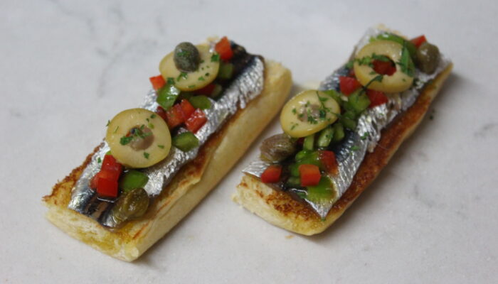 Con Almudena Cacho desde las ondas de Radio Euskadi. Un pincho….digamos curioso. A las 12,40h Antxoas casi en sal Ingredientes 200 g de anchoas frescas 200 g de sal gorda Para el acompañamientos 20 g de AOVE Dominus. 6 aceitunas verdes rellenas de anchoa. ¼ de pimiento rojo ¼ de pimiento verde 20 g de alcaparras Vinagre de manzana Perejil picado Dos bollitos de pan dulce. Mantequilla una nuez Elaboración Limpiar bien las anchoas de espinas y cuadrarlas como si fueran a un desfile. Enterrarlas en sal durante cinco minutos. Sacar de la sal y lavarlas con agua fría. Secar a conciencia. Sumergirlas en aceite hasta que vayamos a usarlas (por supuesto en frio) Ojo, así no duraran más de 48 horas en frio, insisto. Reservar. Cortar en brunoise los pimientos. En rodajas las aceitunas rellenas de anchoa y las alcaparras las dejas como están. Mezclar con algo de AOVE... Leer más