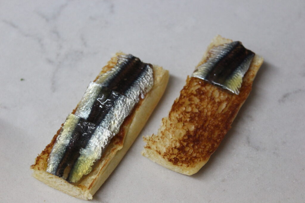 Tostar los panecillos abiertos por la mitad con algo de mantequilla. Montar encima las anchoas y para rematar, la verdura. Un bocado que no te dejará indiferente.