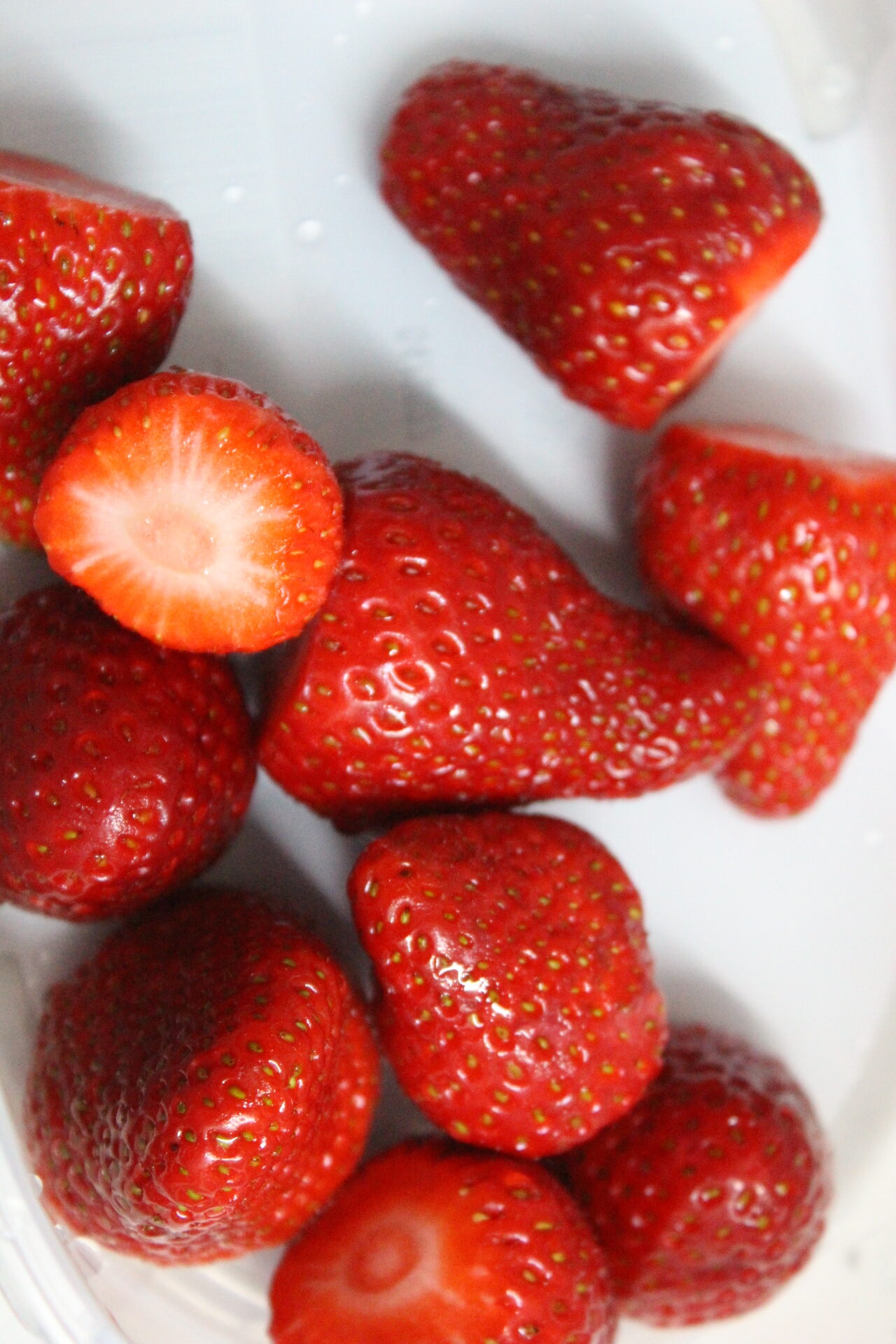 Por otro lado, las fresas bien limpias y la cebolla con algo de azúcar, apenas un toque.