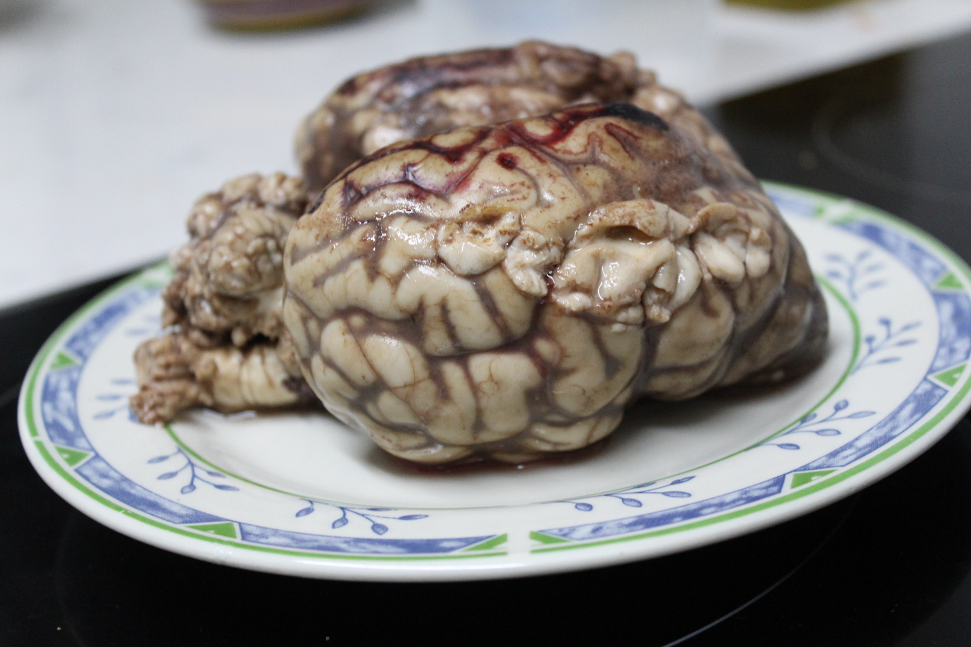Limpiar bien el seso con agua muy fría y vinagre durante por lo menos dos horas. Desechar el agua. Cocerlo durante 15 min en agua salada y dejar enfriar. Reservar.
