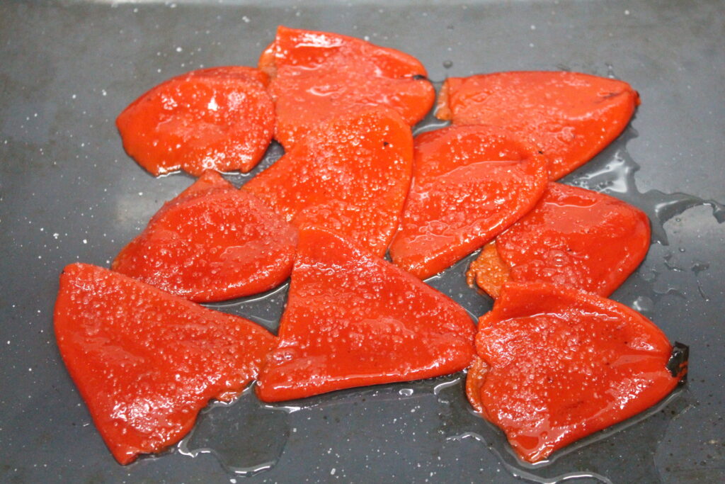 Por otro lado, hemos asado los piquillos durante 45 min con un poco de sal, azúcar y AOVE.