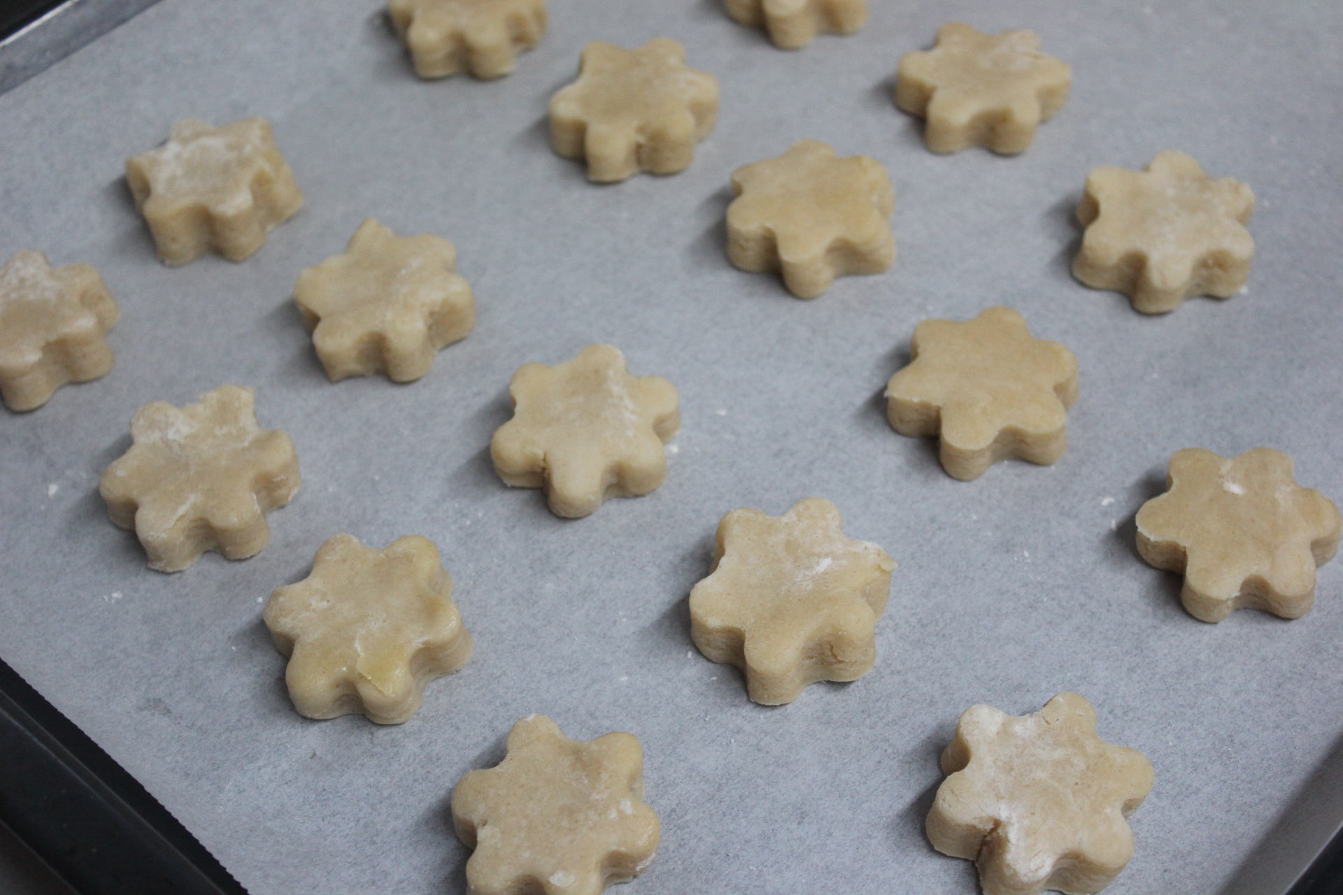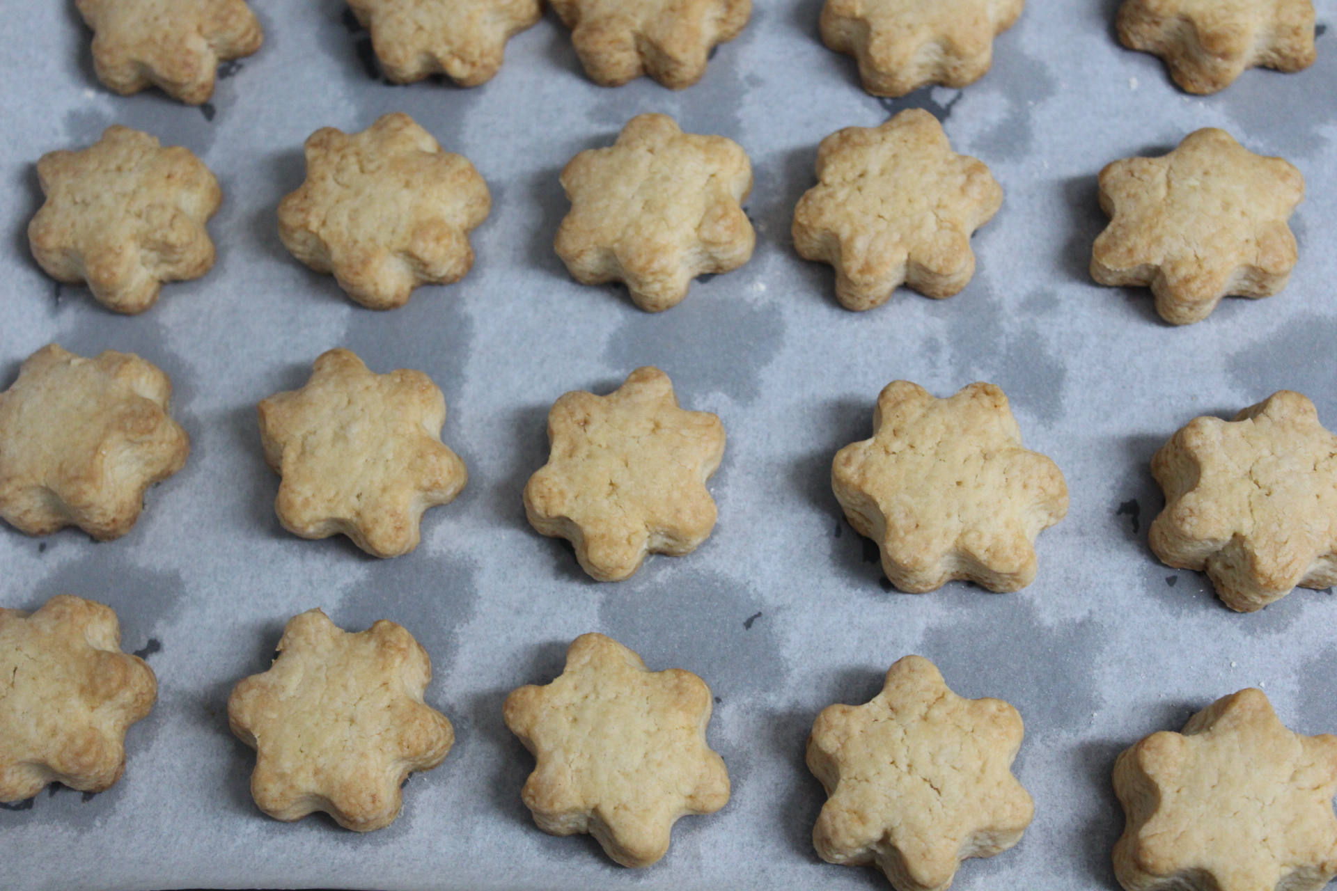 Trascurrido este tiempo estirar la masa entre papeles dando un espesor de centímetro y medio aproximadamente. Dar forma de estrella o de lo que te dé la gana y hornear treinta y cinco minutos a 175ºC.